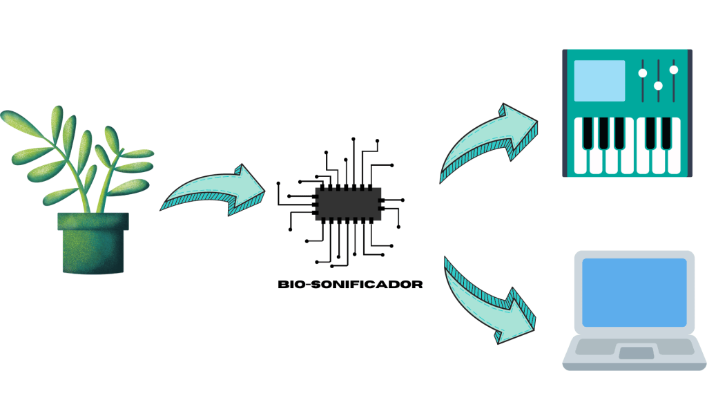 - El Biosonificador, convierte esa biodata, en información musical (sonidos, melodías o ritmos)