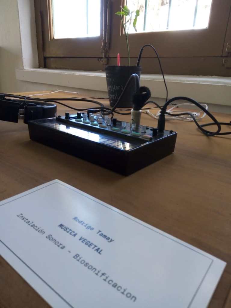 La instalación funciona como un dispositivo de comunicación interespecie, donde aquellos que se acercaran pudieran experimentar en vivo los cambios sonoros de la planta a los distintos estímulos. De esta manera pudimos experimentar como la planta reaccionaba distinto según la persona que interactuaba o según el momento del día.